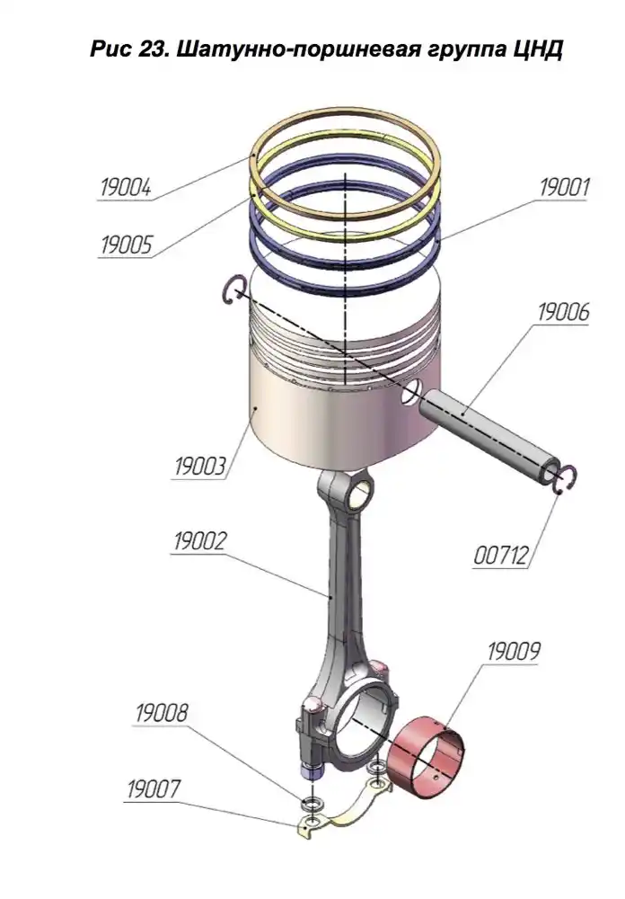 Шатунно-поршневая группа ЦНД ПКСД-5.25 обеспечивает передачу энергии от горения топлива в двигателе на коленчатый вал, который затем передает эту энергию на приводную систему, такую как вал коробки передач или редуктор.